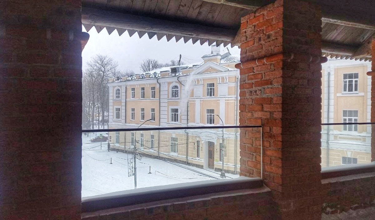 Одна из особенностей музея — возможность выйти на прясла. С них открывается вид на мэрию, кусочек парка Блонье, памятник Федору Коню и расположившийся за ним сквер.