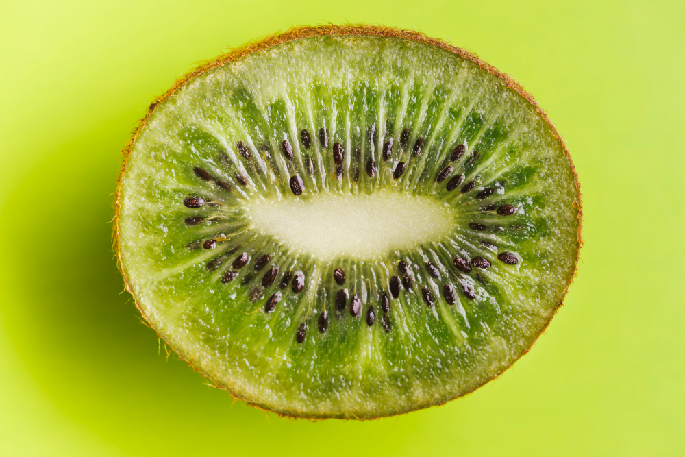 Киви содержит калий, витамин К, который помогает усваивать кальций, а также актинидин, который улучшает переваривание белков. Киви уникален после сбора урожая он продолжает вызревать. Фрукт помогает контролировать сахар в крови за счет обилия клетчатки и низкого гликемического индекса. Также киви способствует выработке серотонина, который улучшает сон. Также киви защищает ДНК, снижая риск мутаций клеток.