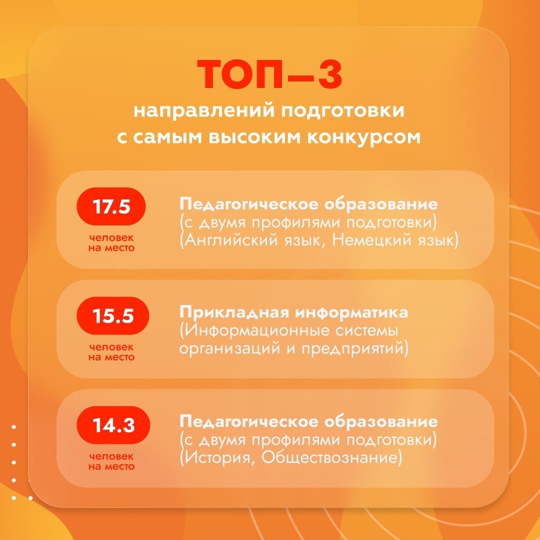 - педагогическое образование (английский и немецкий языки) – 17,5 человек на место;
