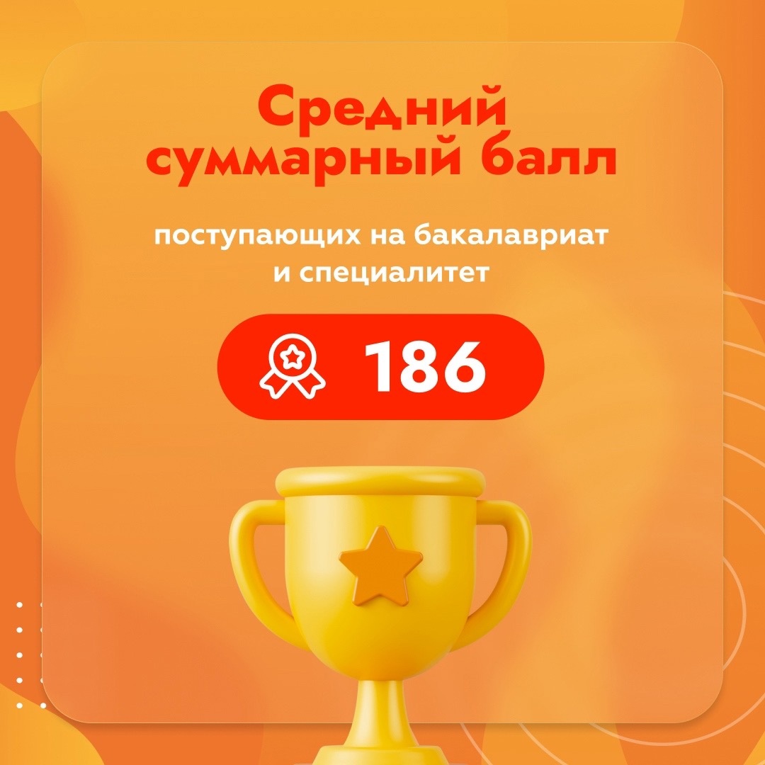 Средний суммарный балл поступающих на бакалавриат и специалитет составляет 186.