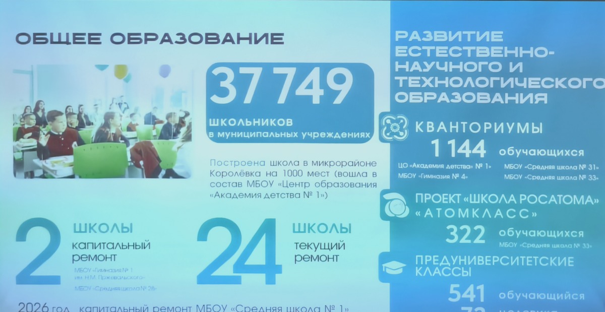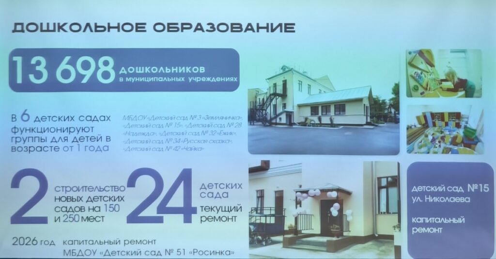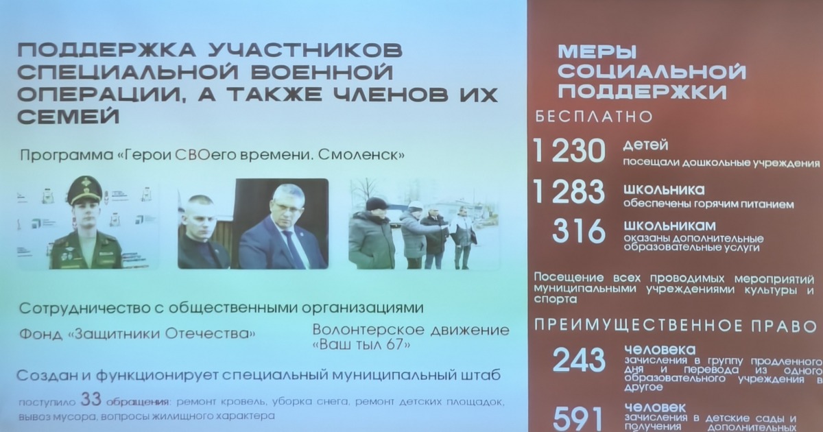 Одним из ключевых направлений работы он назвал всестороннюю поддержку бойцов СВО, которая ведётся совместно с волонтёрскими организациями. В 2025 году 1230 детей участников спецоперации бесплатно посещали детские сады, 1300 школьников получали бесплатное питание, более 300 обучающихся освободили от платы за дополнительные образовательные программы. В городе продолжается подготовка управленцев в рамках проекта «Герои СВОего времени». Один из них — Александр Зайцев, который в сентябре 2025 года был избран депутатом горсовета, а после завершения обучения его ждут в городской администрации.