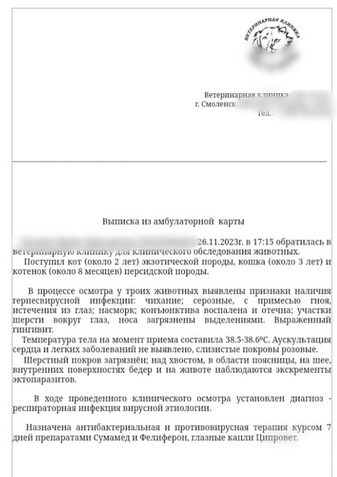 Питомцев осмотрел ветеринар, им требуется лечение.