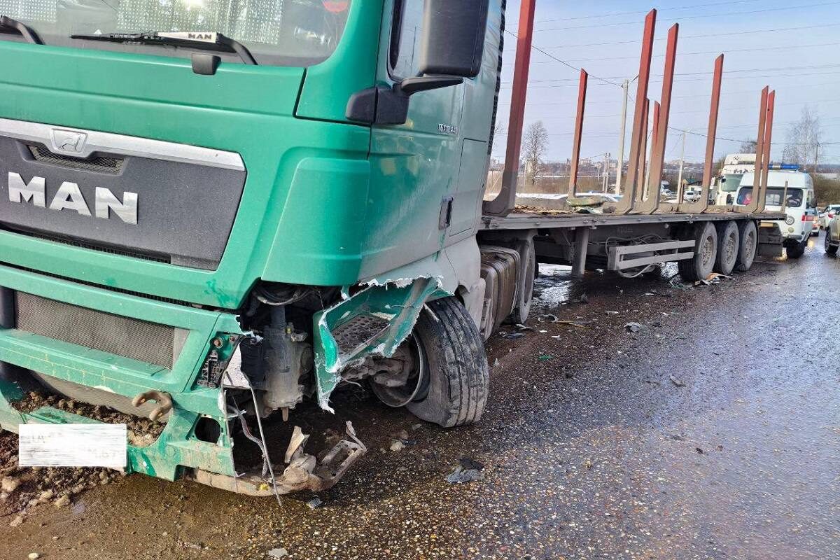 Первое ДТП произошло примерно в 14:10 на улице Панино в Вязьме. Там столкнулись Volkswagen Polo и МАН TGX. Как уточнили сотрудники ведомства, 37-летний водитель за рулем легковушки выехал на встречку и врезался в тягач, которым управлял 36-летний мужчина. В результате пришлось госпитализировать водителя и 31-летнего пассажира легкового автомобиля.