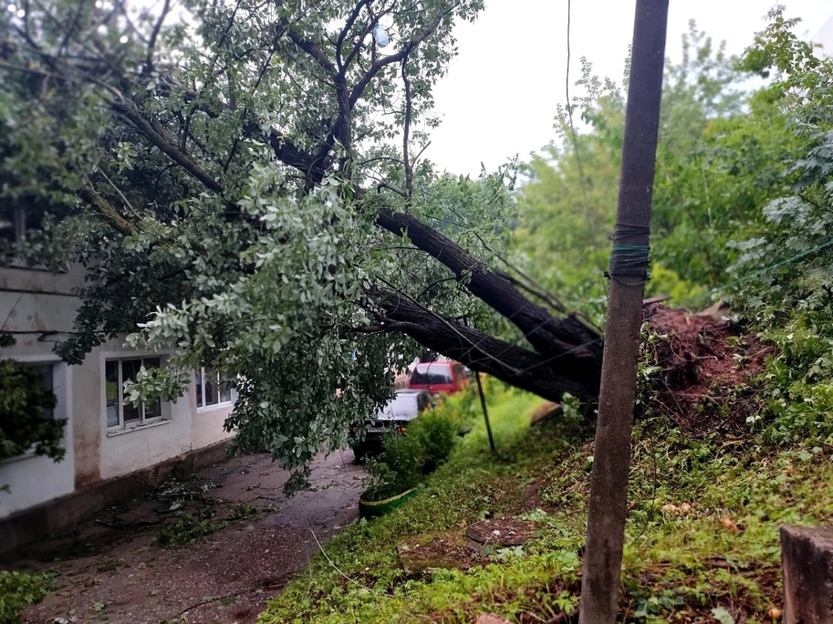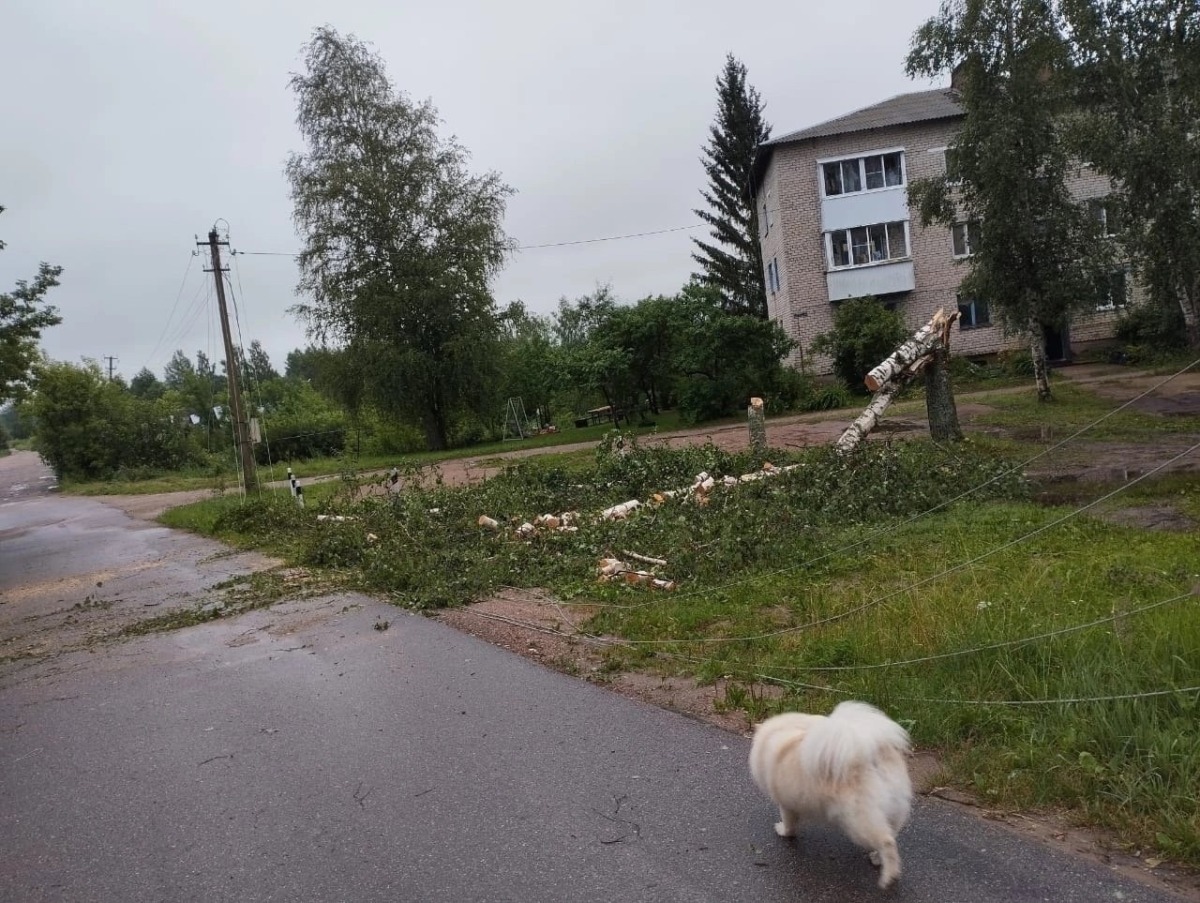 А в деревне Чистик Руднянского района дерево упало на припаркованный автомобиль, из-за мощных порывов ветра зафиксированы обрывы ЛЭП.