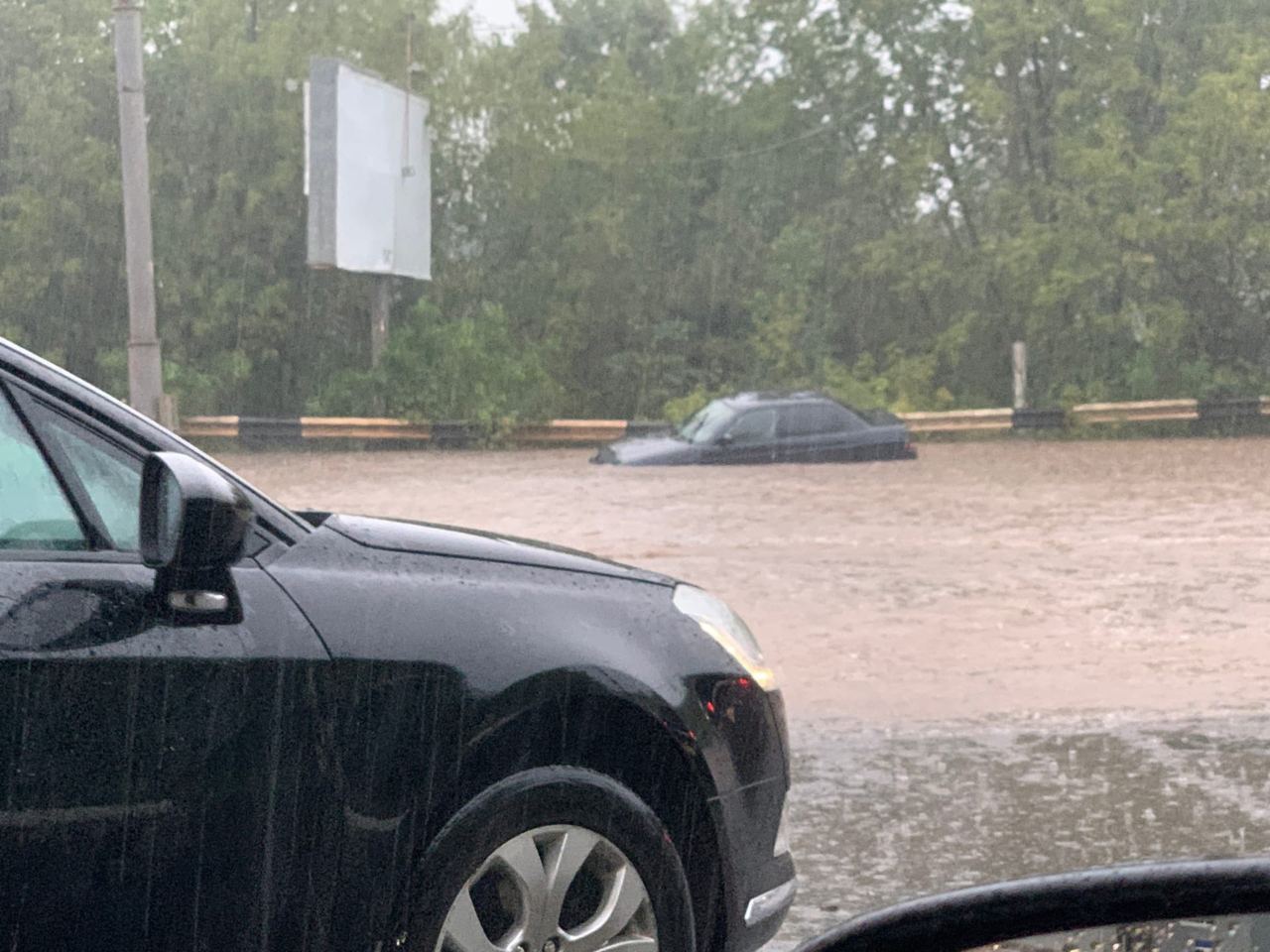 В районе дамбы в облцентре авто ушло под воду.