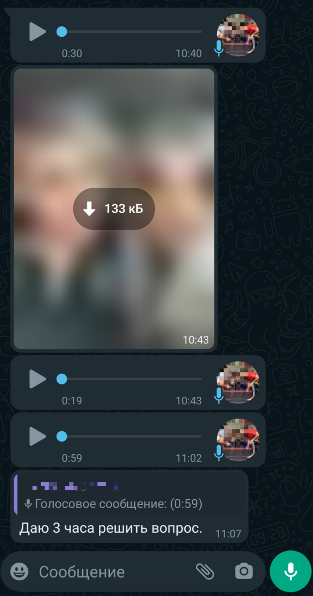 Голосовые сообщения неизвестное лицо присылало на WhatsApp