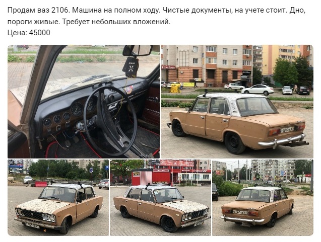 Кроме того, смоляне делятся фото ВАЗ 2106: его владелец на днях выставил авто на продажу за 45 тысяч рублей.
