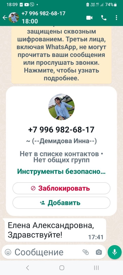 «Мошенники создали фейковый аккаунт в WhatsApp с моим именем и фото, с неизвестным для меня номером +7 996 982 68 17».