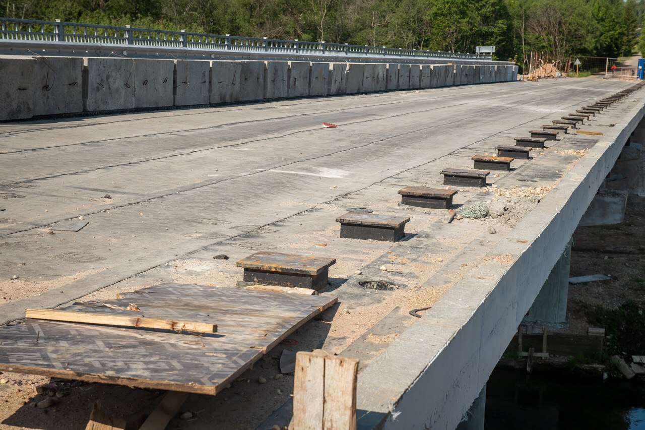 Контракт по мосту с предыдущим подрядчиком расторгнут. Сейчас работы выполнены на 75%: гидроизоляция, частично уложен асфальтобетон. Проезжая часть, барьеры и перила, благоустройство – всё это необходимо сделать до конца осени.