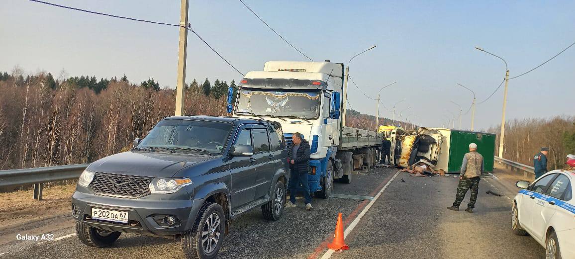 По информации региональной Госавтоинспекции, 2 апреля около 7:20 на 23 километре автодороги Северо-восточный обход Смоленска водитель Hyundai влетел в стоящий МАЗ с полуприцепом.