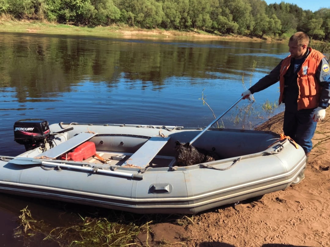 Поисково-спасательный отряд Велижа пришел на помощь: пес доставлен на сушу.