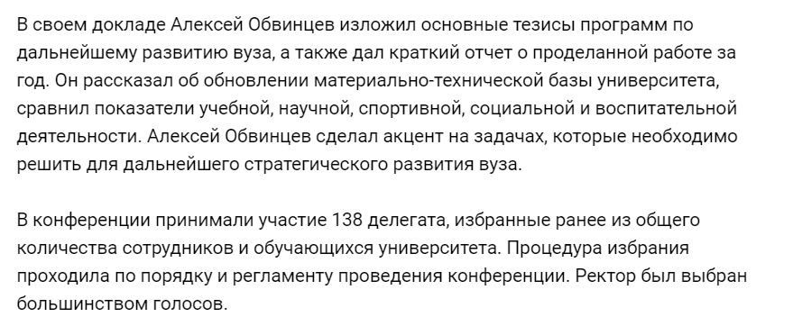«Путем работы мандатной и счетной комиссии, а также большинством голосов ректором СГУС был избран Алексей Обвинцев», — появилось официальное сообщение в группе вуза «ВКонтакте».