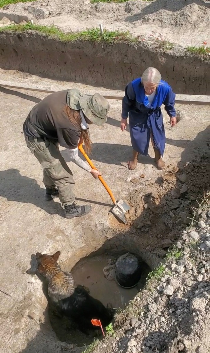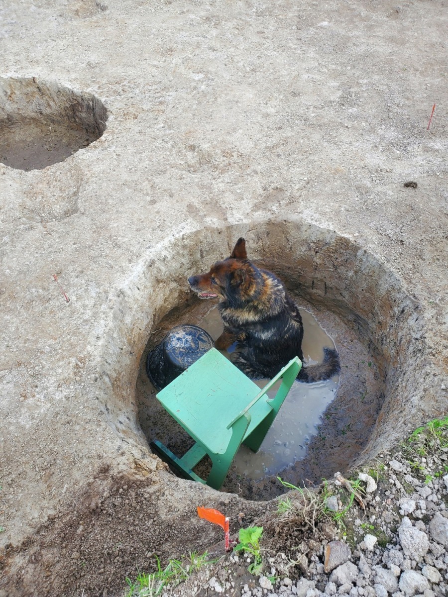 Археологи вместе с жителями улицы Краснофлотской в течение 40 минут пытались спасти Пирата из ловушки. Операция прошла успешно, но испуганная собака еще два часа ожидала на месте раскопа своего хозяина.