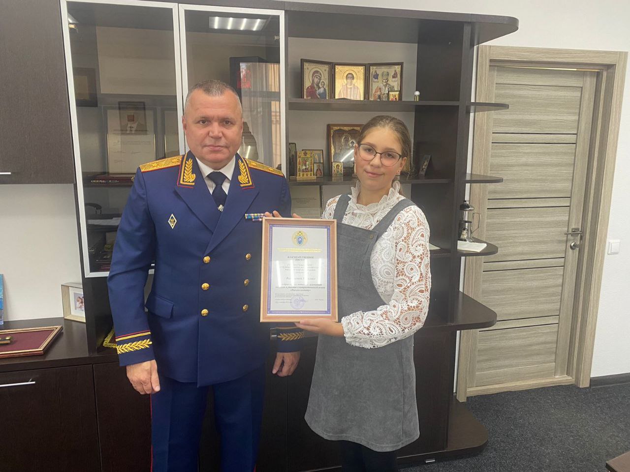 Как сообщили редакции в пресс-службе СУ СК РФ по Смоленской области, на днях руководитель регионального следственного управления СКР генерал-майор юстиции Анатолий Уханов встретился с Василисой и матерью участника СВО Ириной Николаевной.