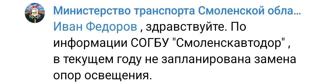 Задержка в запуске трамвайного движения в областном центре не ожидается, предполагают администраторы паблика «Смоленский транспорт». Ремонт рельсов на улице Тенишевой находится на завершающей стадии, в ближайших планах – сварить стыки, уложить железобетонные плиты, соединить отремонтированный участок с остальной сетью. Кроме того, необходимо решить вопрос с контактной сетью. При этом региональный минтранс сообщил, что в текущем году не запланирована замена опор освещения.