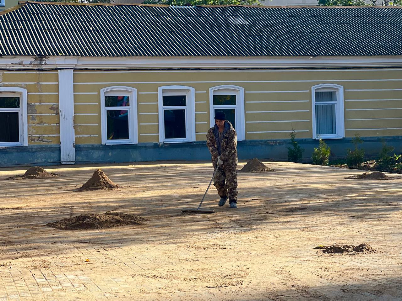 Уточняется, что подрядчик демонтировал старый асфальт, брусчатку и другие элементы. Затем специалисты установили бордюры, возвели новые подпорные стенки, облицованные натуральным камнем.