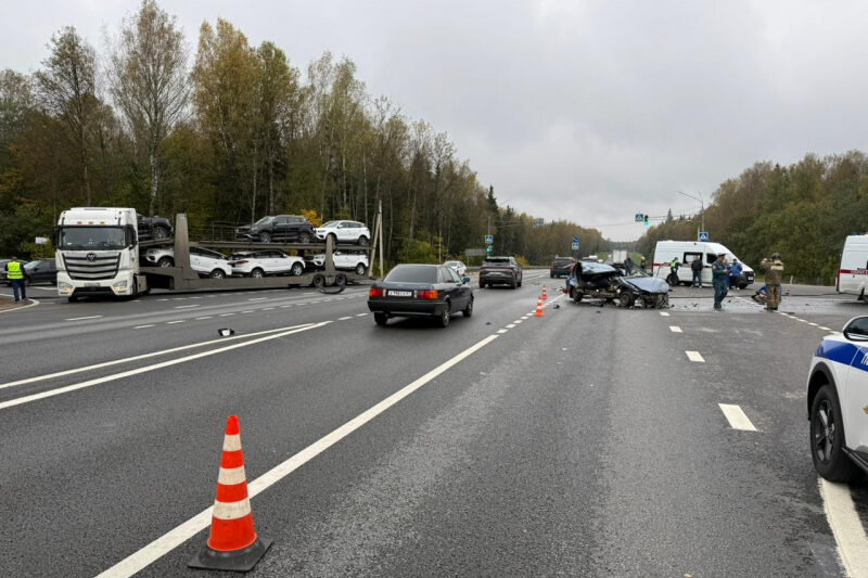 Авария произошла около 8:45 на 375 километре трассы М-1. По предварительным данным, 62-летний водитель Foton начал разворот, не пропустив «Ладу Калину» под управлением 29-летнего мужчины. От удара отечественная легковушка вылетела на встречную полосу, где столкнулась еще и с «Москвичом», за рулем которого находился 41-летний автомобилист.