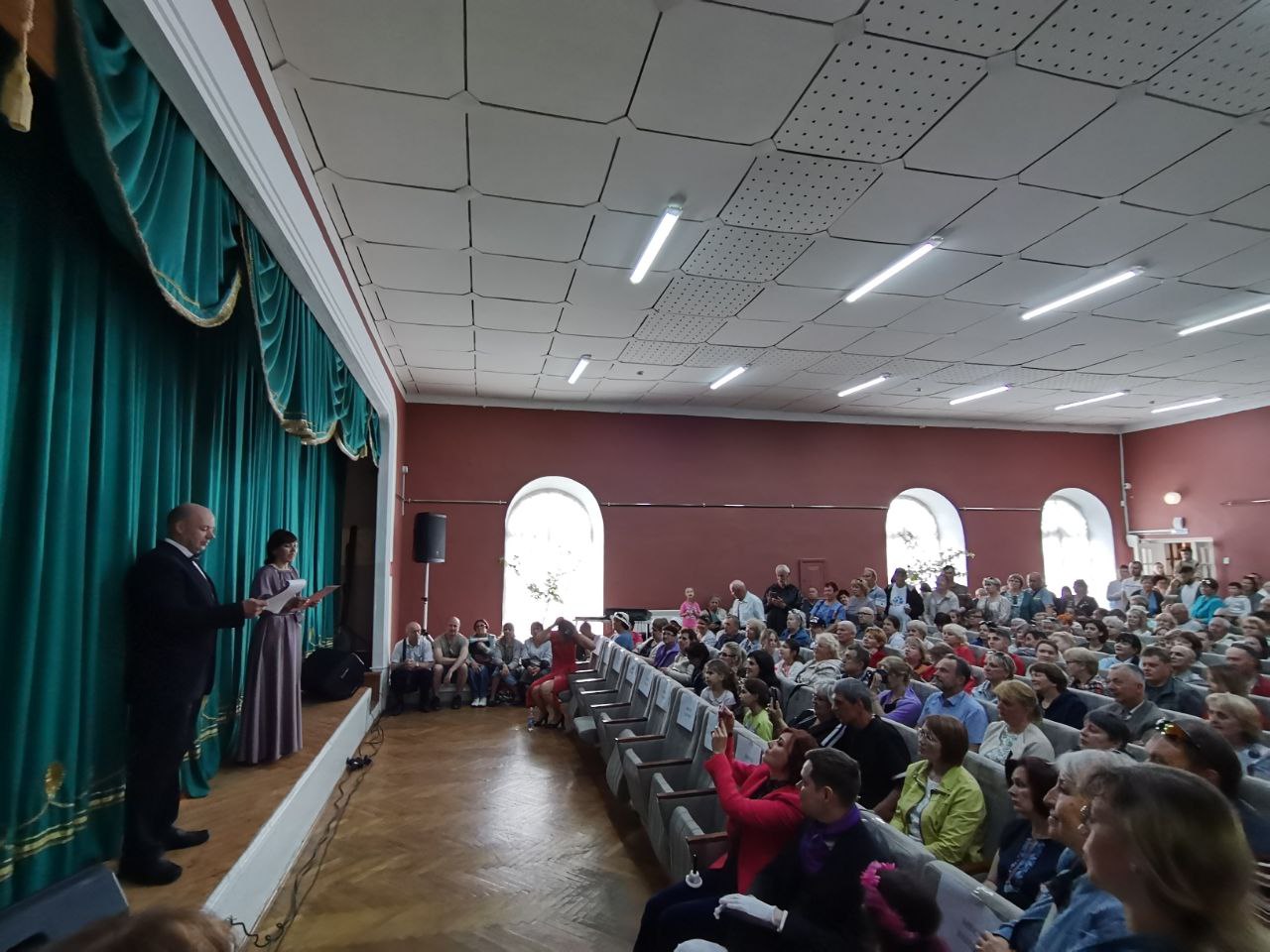 Публика приняла гостей очень тепло. Пьеса прошла с успехом, зал рукоплескал. И все бы хорошо, если бы не одно «но». Мест в концертном зале было значительно меньше, чем желающих попасть на представление. Кто-то успел присесть на подоконники, но многим пришлось стоять. Дополнительных стульев не было. Завсегдатаи Грибоедовского дня, которые приезжают на праздник не первый год, удивленно перешептывались: почему спектакль идет не на свежем воздухе, где всем бы хватило места удобно устроиться, а здесь, в маленьком зале…