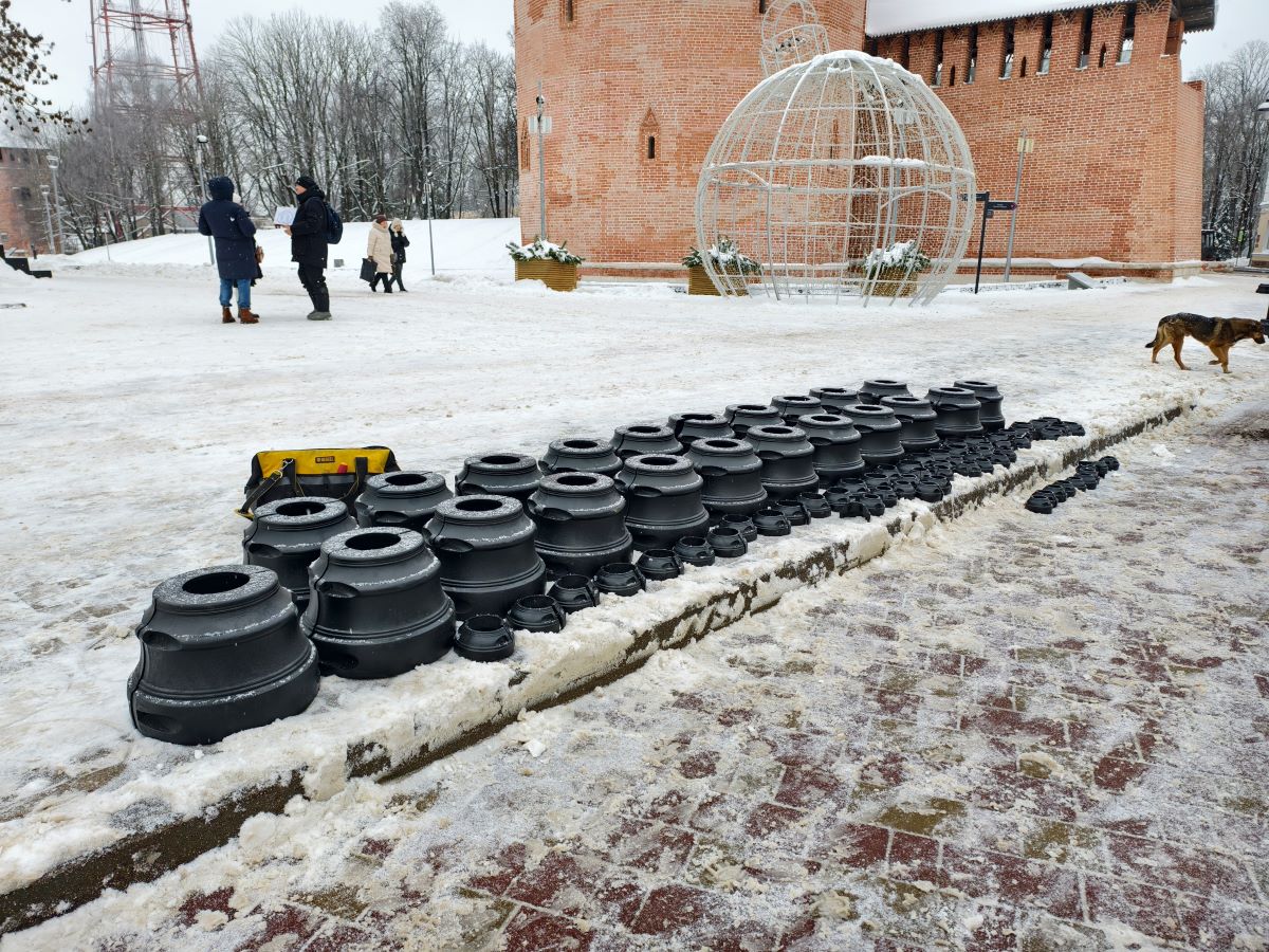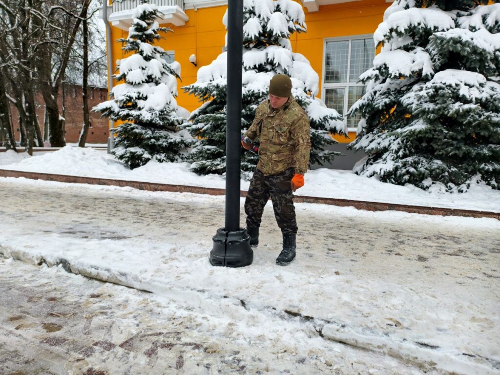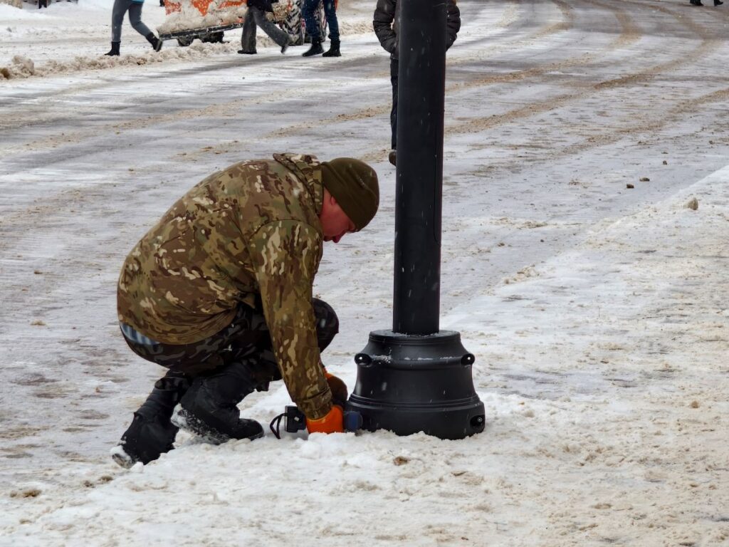Новые современные фонарные столбы в центре Смоленска обретают законченный внешний вид. В разгар праздников бригады подрядчика монтируют «юбки», или обнарядки, которые скроют монтажные болты, крепящие столбы к цоколю и защитят их от разрушающей влаги. Работы проходят на улице Октябрьской революции.