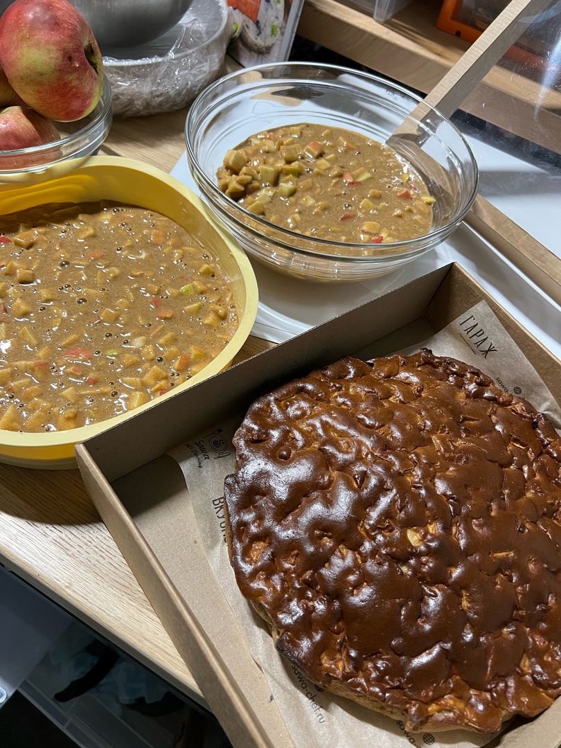 — Отделяем белки от желтков. Желтки взбиваем с сахаром до состояния крема. Белки взбиваем с солью и лимонным соком до твердых пик. Муку, соду просеиваем через сито и добавляем к желткам, перемешиваем. Яблоки нарезаем мелким кубиком, добавляем к желткам и муке. Перемешиваем, затем добавляем белки. Еще раз все перемешиваем до однородной массы. Форму смазываем сливочным маслом, выкладываем часть теста, посыпаем корицей, затем оставшуюся часть теста выкладываем. Готовую заготовку ставим в разогретую до 180 градусов духовку на 30-40 минут, — рассказывает собственный рецепт приготовления Наталия.