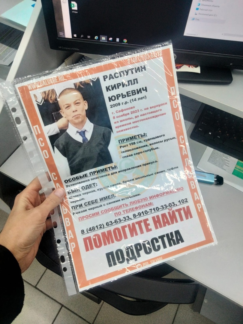 Как сообщал SmolNarod, 8 ноября в Сафонове пропал 14-летний Кирилл Распутин. Отец подростка рассказал нашему изданию о потасовке, после конфликта мальчик сидел отдельно от товарищей, на звонки папы не отвечал. Судя по записям с камер видеонаблюдения, после уроков Кирилл направился в сторону дома, но так и не дошел.