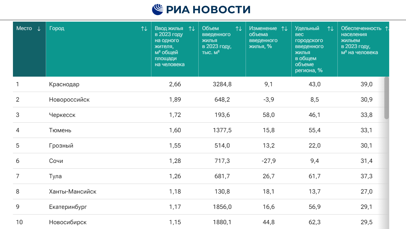 Специалисты РИА Рейтинг опубликовали ранжир российских городов по вводу жилья в эксплуатацию в 2023 году. Всего в России ввели 110,44 миллиона квадратных метров, что на 7,5% превышает показатели 2022 года.