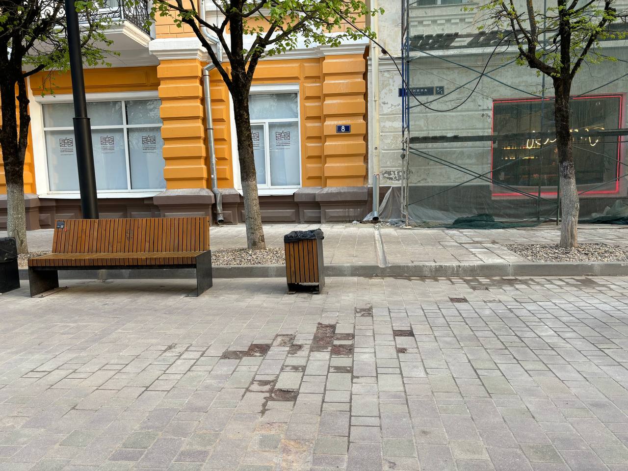 Время, хоть и совсем не продолжительное, не пощадило плитку на пешеходной части улицы Ленина и в районе Главпочтампта на улице Октябрьской Революции.