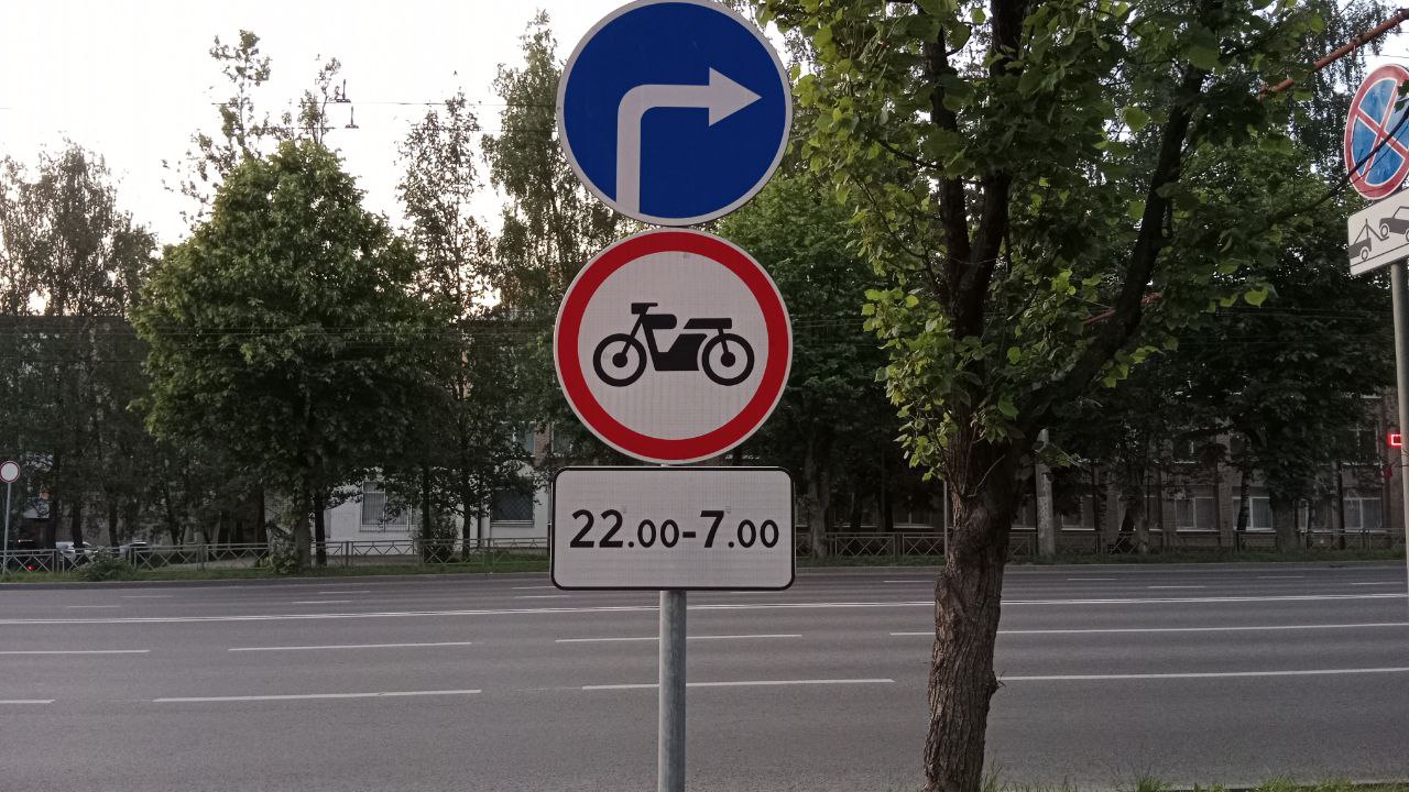 - въезд под знак 3.5 «Движение мотоциклов запрещено»