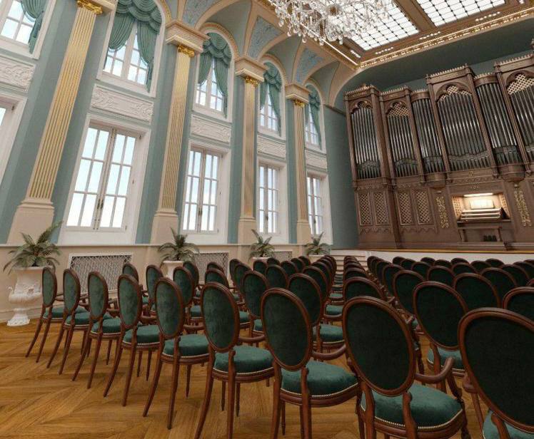 Концертный зал с классическим духовым органом будет рассчитан на 209 мест, он разместится на первом этаже. На втором появится фойе для отдыха и буфет, а на третьем — административные помещения.