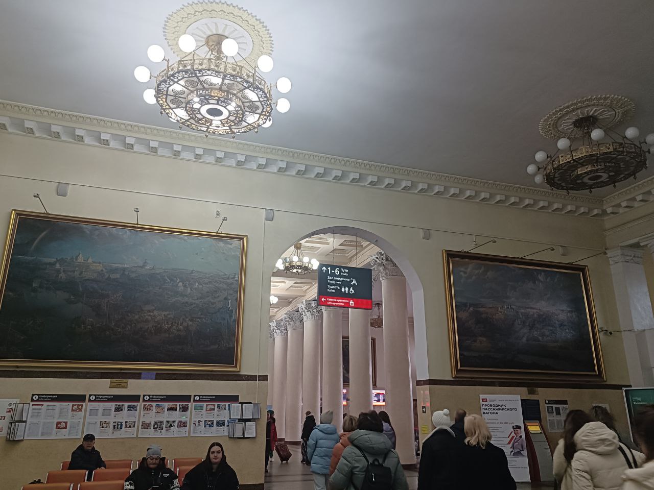 Как часто вы обращали внимание на картины на стенах смоленского вокзала? В рамках экскурсии собравшиеся рассмотрели репродукции полотен Серова «Ходоки у Ленина», Кившенко «Военный совет в Филях», Непринцева «Отдых после боя» и Шишкина «Рубка леса». По словам Марии Демочкиной, картины «Смоленск православный» и «Смоленск Великокняжеский», написанные художником Булдаковым, — это единственные подлинники.