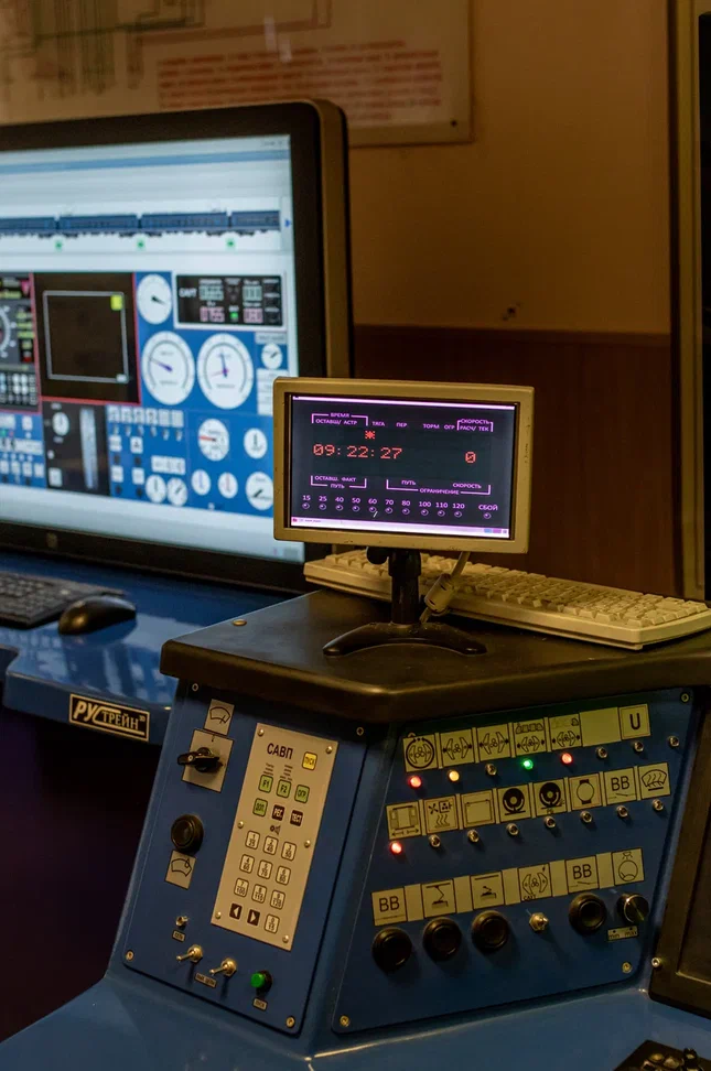 В депо есть специальные обучающие классы с тренажерами, где будущие специалисты отрабатывают навыки вождения и действия в различных нестандартных ситуациях.