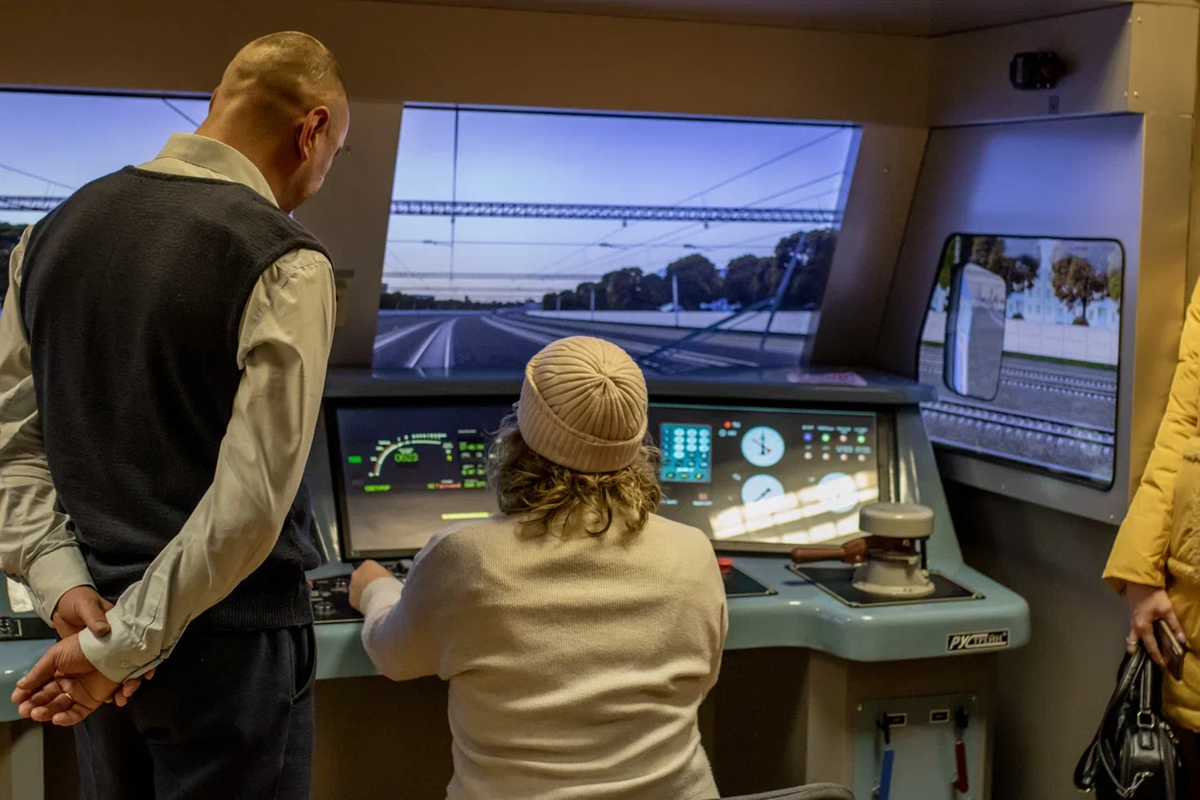 Все желающие также смогли ощутить себя настоящими машинистами, прокатившись по виртуальной железной дороге на дизель- и электропоездах.