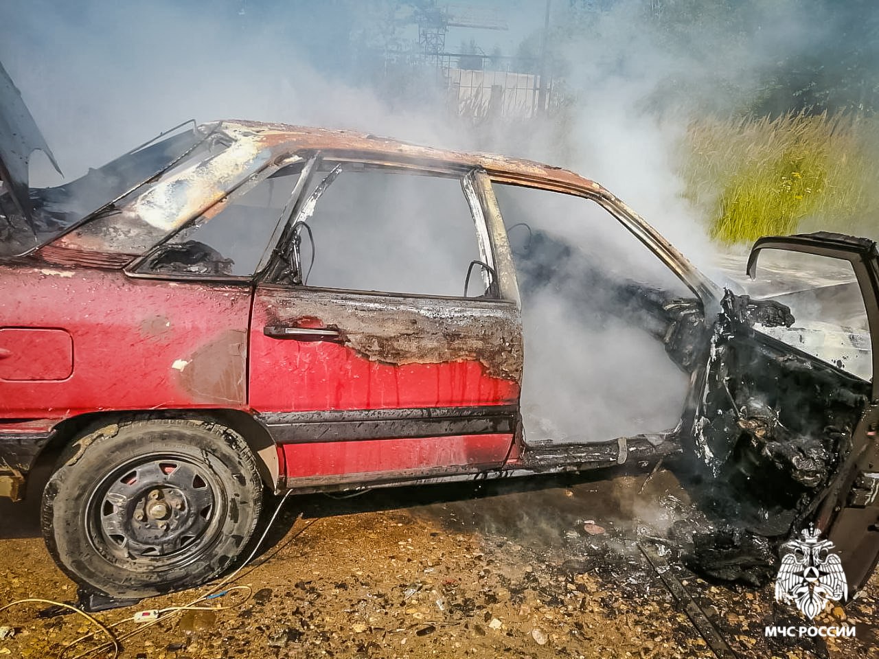 «Совместными усилиями мужчины вытолкали транспортное средство на улицу и до прибытия пожарных сбивали пламя огнетушителями», — пояснили в ведомстве.