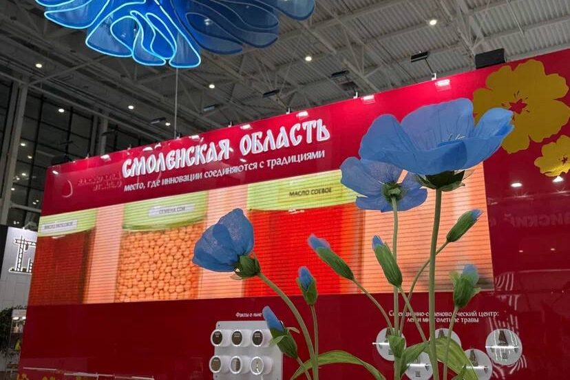 Экспозиция Смоленской области называется «Место, где инновации соединяются с традициями». Основная часть стенда посвящена успехам региона в льноводстве. Однако, помимо «северного шелка», на экспозиции также представлена продукция 19 предприятий, в том числе выпечка, рыбная и молочная продукция, овощные консервы и многое другое.