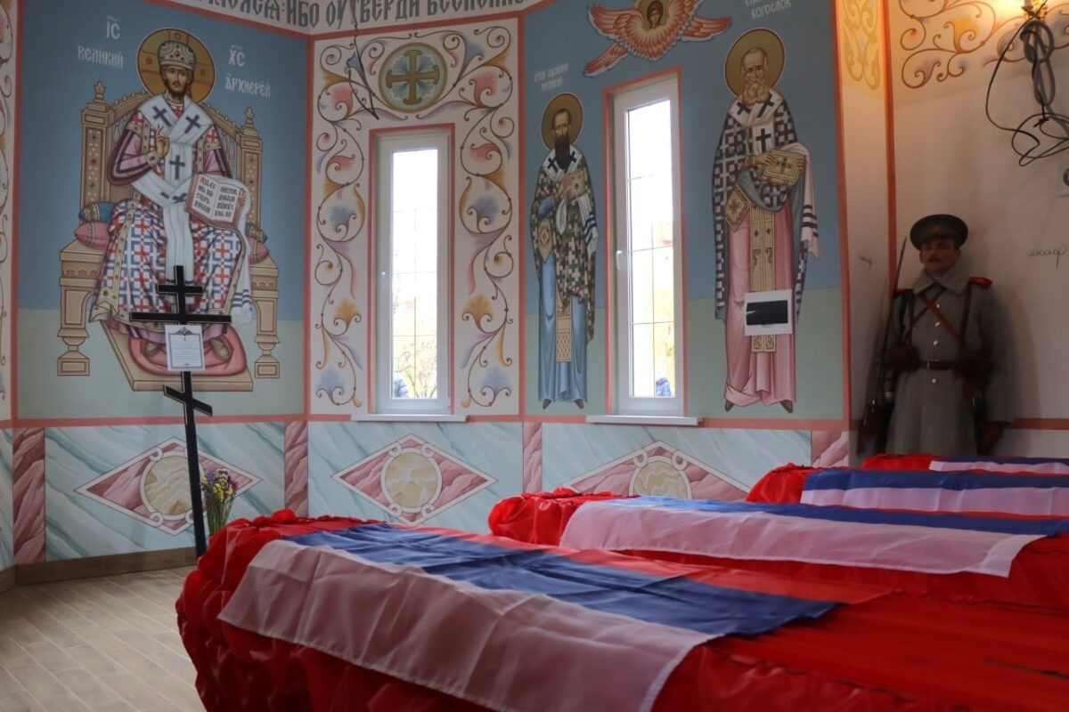 Митрополит Смоленский и Дорогобужский Исидор провел отпевание в новой церкви – в храме в честь праведного страстотерпца Евгения Боткина. Часовню в память о погибших на фронтах Первой мировой войны планировалось построить на Братском кладбище еще в 1914 году, но этим планам помешала претвориться в жизнь революция.