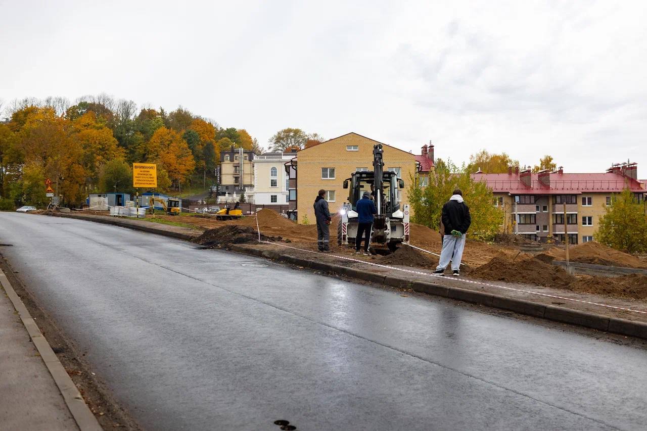 В настоящее время подрядчик занимается вертикальной планировкой земельного участка. Параллельно специалисты готовят основания для установки бортовых камней и поребриков, а также для дальнейшего устройства железобетонных подпорных стен.