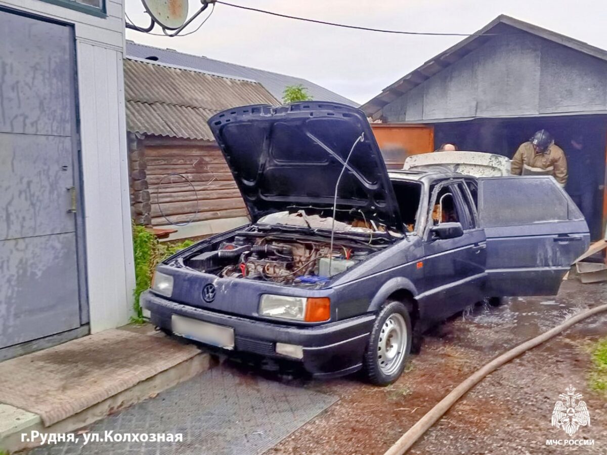 Первое возгорание случилось в Рудне, в гараже на Колхозной улице. Владелец иномарки оперативно вызвал пожарных и в ожидании профессионалов стал сбивать пламя при помощи огнетушителя. Во избежание распространения огня машину было решено выкатить на улицу — сделать это хозяину помогли очевидцы.