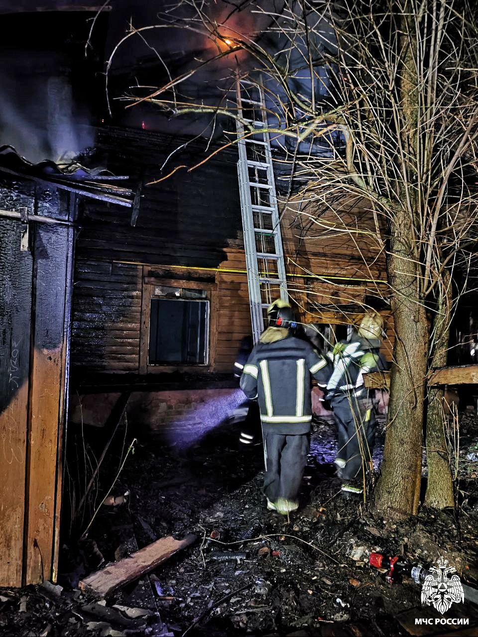 Силами 15 специалистов ведомства открытое горение было ликвидировано, в настоящее время проводится разбор и проливка конструкций. В результате пожара повреждено около 100 квадратных метров постройки.