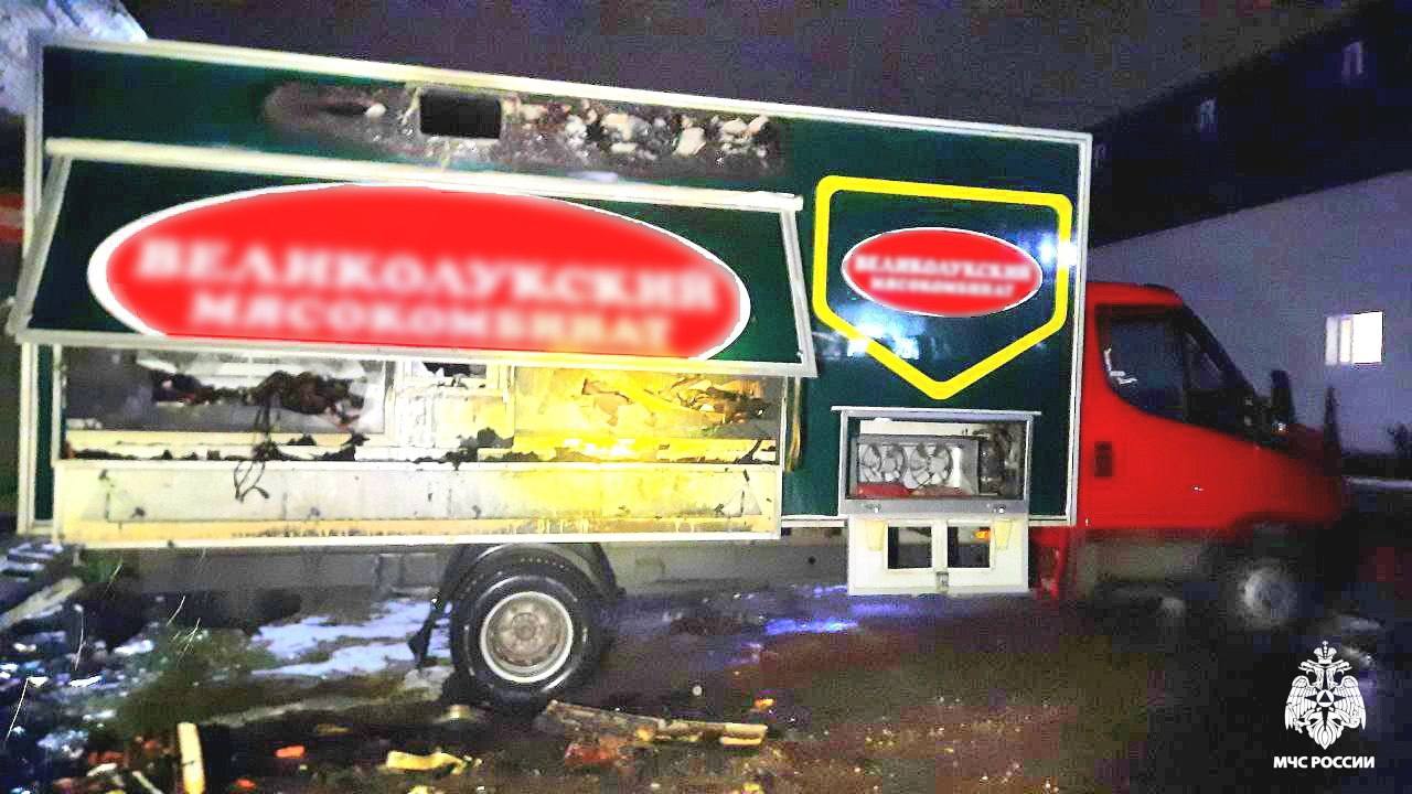 Как оказалось горело холодильное оборудование в кузове. Рефрижераторы с мясопродуктами были уничтожены, однако кабина фургона уцелела.