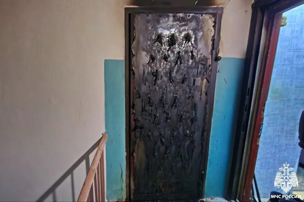 В результате пожара обгорела дверь, а лестничная клетка оказалась закопчена. Благо обошлось без пострадавших.