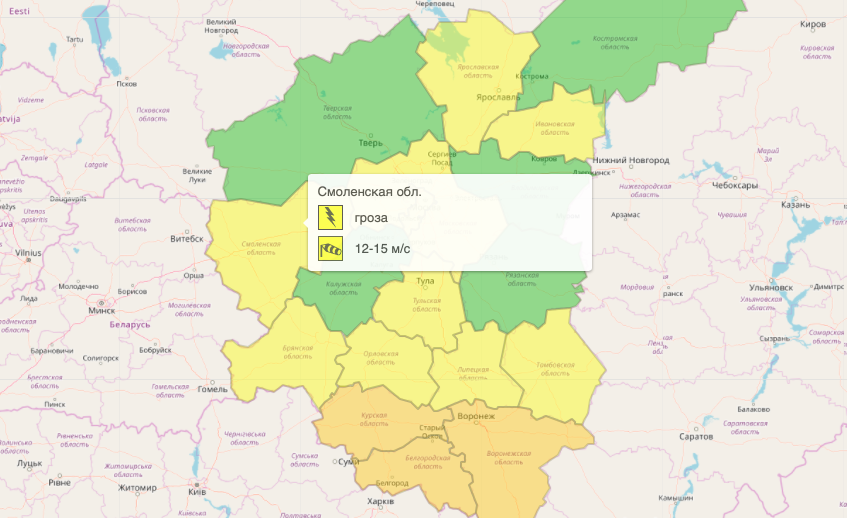 Добавим, что на прогностической карте предупреждений Гидрометцентра России Смоленщина окрашена в желтый цвет — это означает, что метеорологические условия потенциально опасны для населения региона. Специалисты учреждения считают, что основной удар смоляне примут на себя в период с 21:00 четверга до 09:00 пятницы, а после погода в субъекте вновь станет комфортной.