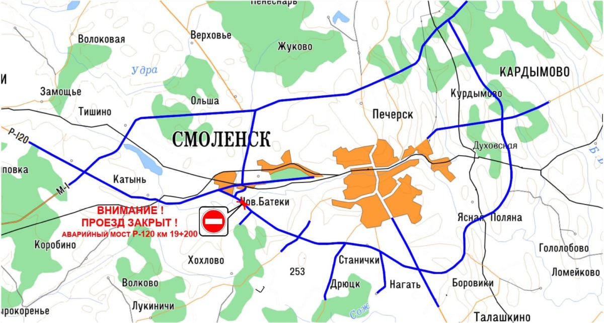Речь идет об участке юго-западного обхода Смоленска — мосте на 19 километре трассы Р-120 Орёл – Брянск – Смоленск – граница с Республикой Беларусь. В настоящее время бесперебойный пропуск транспорта по сооружению небезопасен для участников дорожного движения.