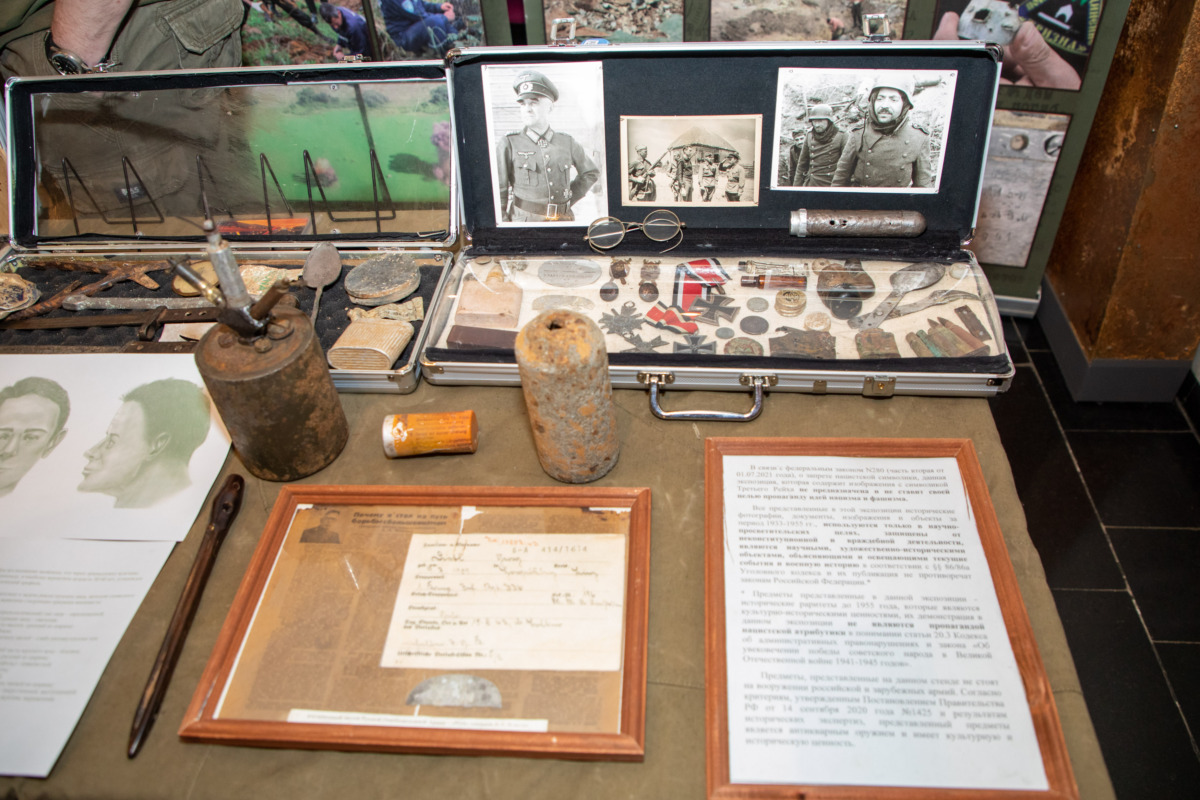 «В нашей сегодняшней экспозиции представлены и личные вещи бойцов Красной Армии, и бойцов Вермахта. Также мы представляем коллекцию холодного оружия от времен Первый и Второй мировых войн до современности», — отметил руководитель поискового отряда «Тризна» Кирилл Долинский.