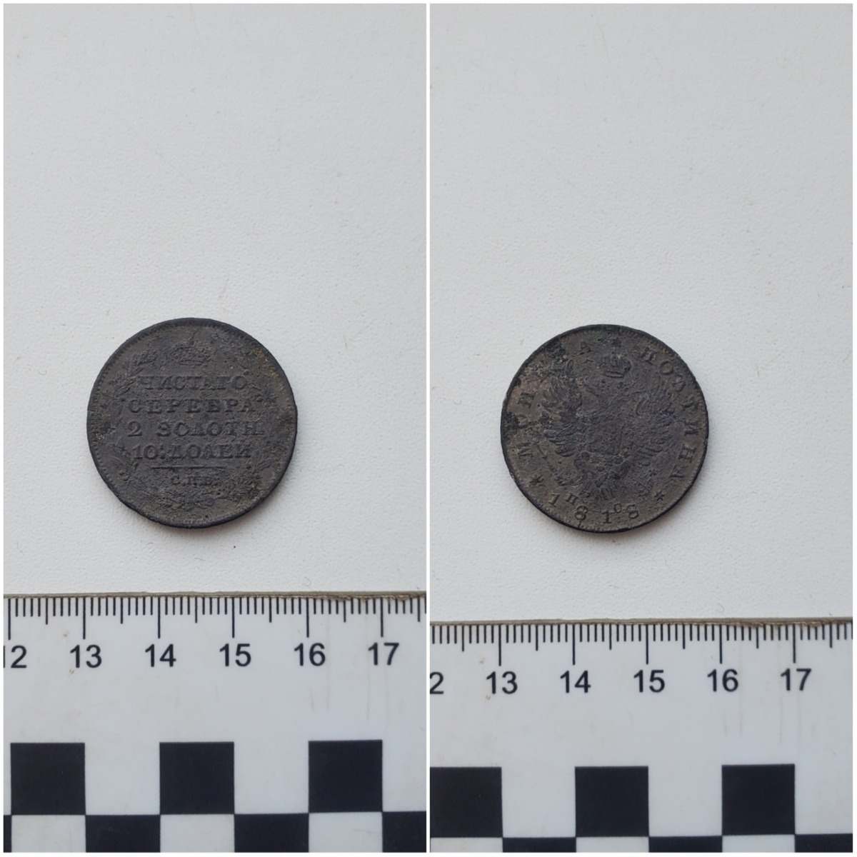 - серебряную монету Александра I 1818 года, которая, вероятно, побывала в пожаре,
