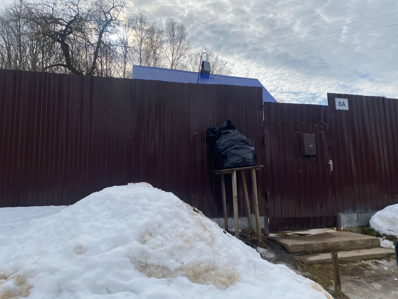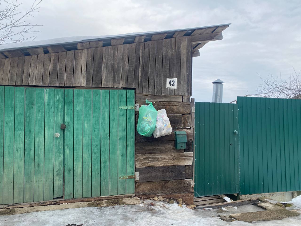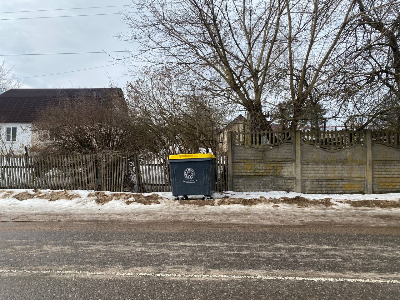 Ни одного контейнера там действительно не оказалось, вместо них мы обнаружили мусорные мешки, «повешенные» на заборах частных домов. Местные жители нам пояснили, что у них долгое время был провозной сбор мусора, но в последний раз отходы вывозились 1 февраля.