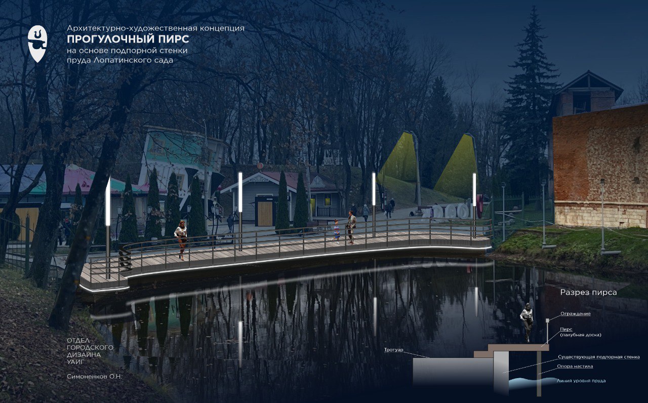 На портале Единой информационной системы «Закупки» завершился открытый конкурс на устройство прогулочного пирса в центральном парке Смоленска. Сооружение будет создано на основе подпорной стены пруда Лопатинского сада со стороны улицы Дзержинского, около колеса обозрения.