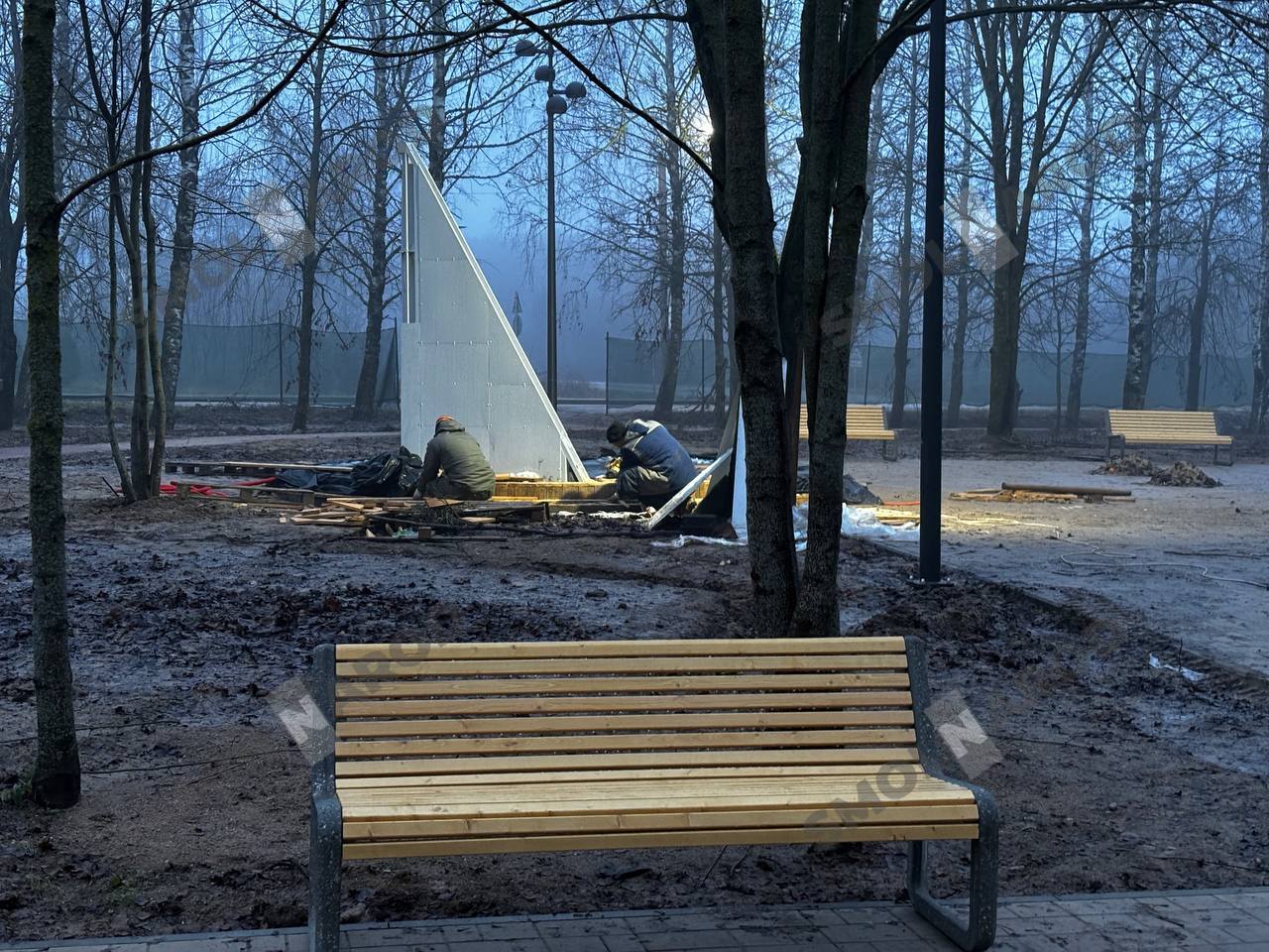Из приведенной хронологии внимательный читатель уже понял, что в установленный контрактом срок работы не завершились. В августе стороны заключили дополнительное соглашение о продлении их выполнения до 30 ноября «в связи с увеличением объема работ, а также в связи с гидрогеологическими условиями». Объем работ действительно увеличился: к ноябрю стоимость реализации проекта подорожала примерно на три миллиона рублей. Что и почему пошло не так с гидрогеологией неизвестно. Однако вместо завершения работ в довольно комфортном сентябре рабочие теперь месят грязь в холоде.