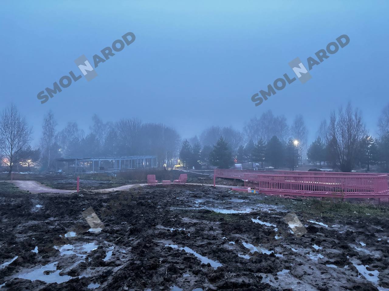 Комфортная среда в честь летчика Николая Гастелло в райцентре Смоленской области все еще тонет в грязи