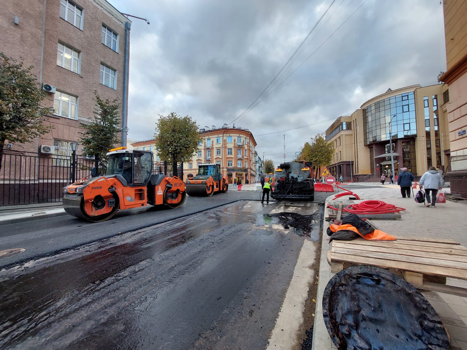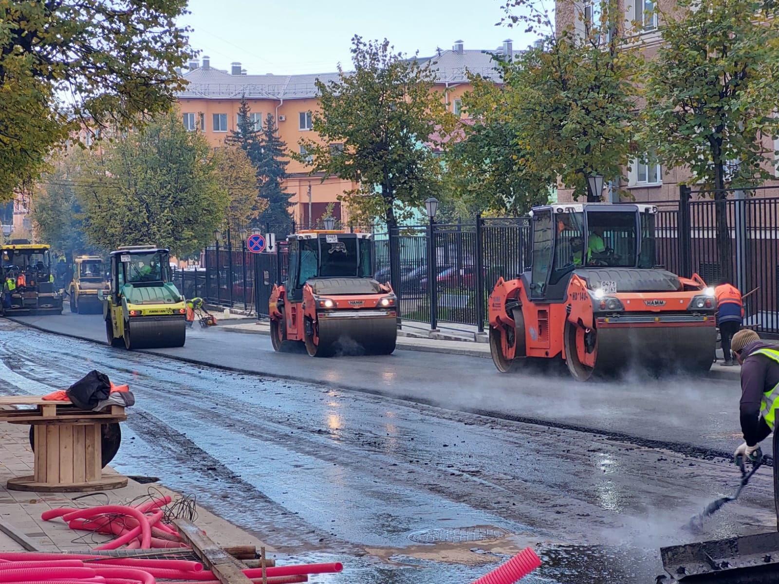 В пятницу, 18 октября, рабочие уложили верхний слой асфальта на обоих участках улицы.