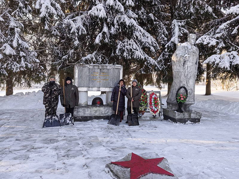 Вот далеко неполный список дел «доброхотов». Поисковый отряд «Юнармеец» из Ершичского округа привел в порядок территорию памятника «Воинам-освободителям». В Хиславичах отряд «Хослав» и молодогвардейцы очистили от снега подходы к памятнику мирным гражданам, расстрелянным в марте 1942-го. Участники поискового отряда «Звезда» и военно-патриотического клуба «Смена» привели в порядок памятник «Воину-освободителю» в шумячской деревне Понятовка. Боец отряда имени Григория Бояринова из Ярцевского округа Самир Бабаев расчистил подход к Вечному Огню. Поисковики отряда «Ярцево» вместе с сотрудниками историко-краеведческого музея приняли участие в субботнике на «Поле Памяти».